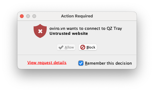 - Phải tắt ứng dụng QZ Tray và chạy lại ứng dụng.