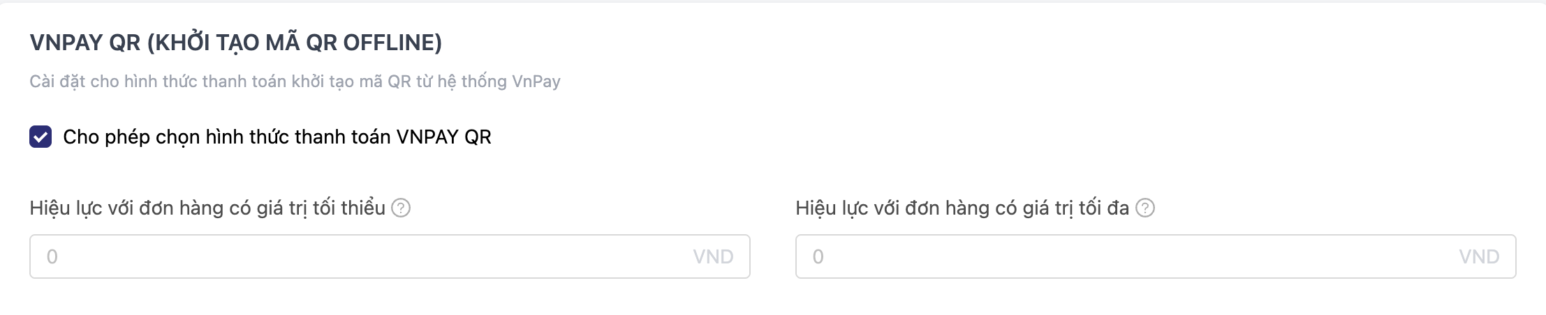- Tick chọn Cho phép chọn hình thức thanh toán VNPAY QR.